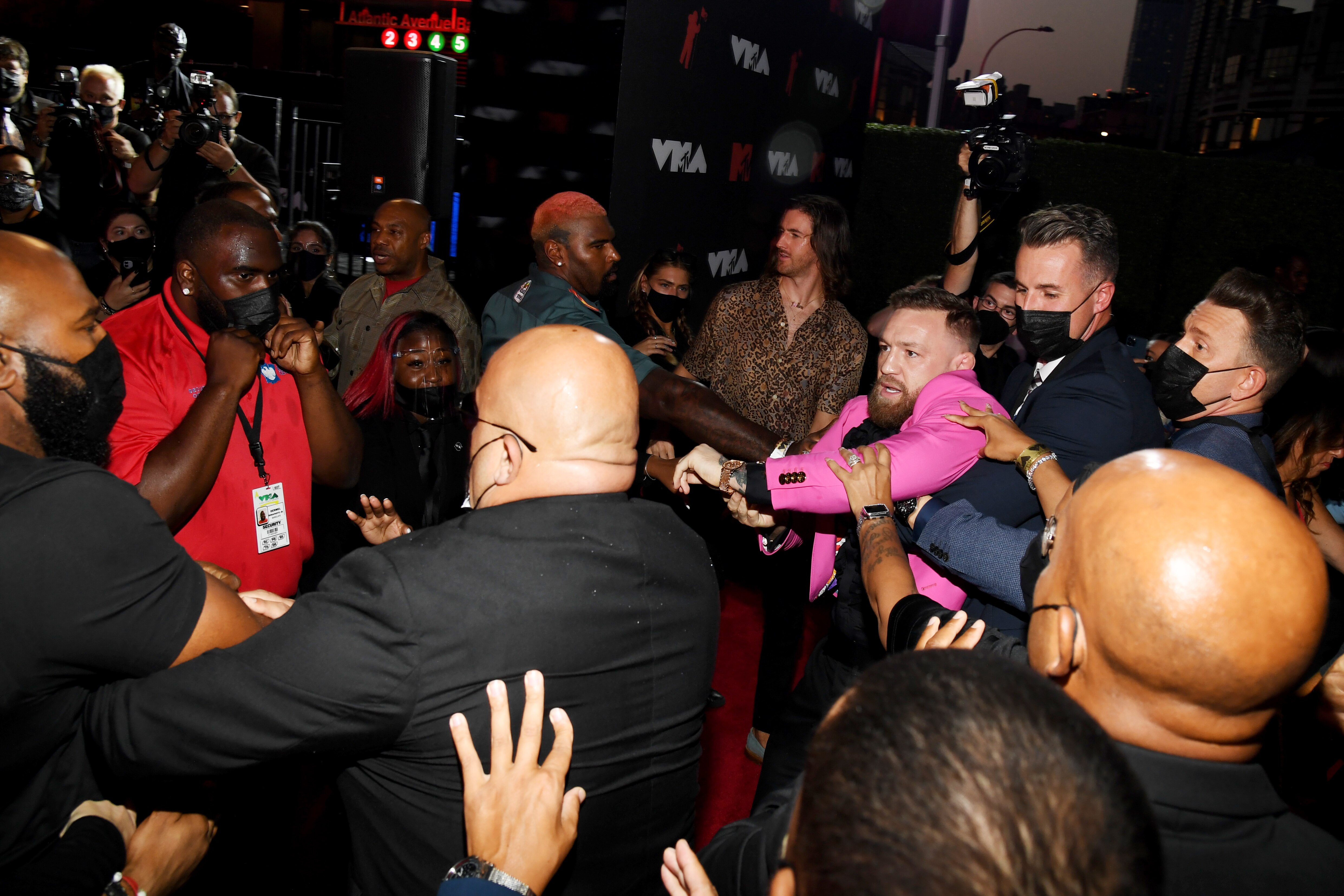 Machine Gun Kelly and Conor McGregor appeared to get into a physical altercation on Sunday night. Conor McGregor and Machine Gun Kelly have found themselves at the centre of a red carpet controversy at the 2021 MTV VMAs after getting into an altercation. Conor McGregor invited Machine Gun Kelly to his next fight after they got into a brawl at the VMAs 2021.